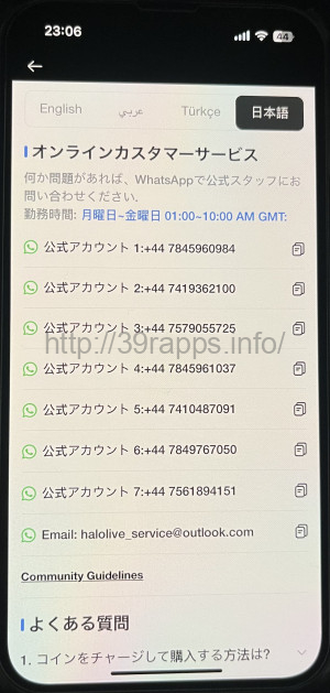- メールアドレス:halolive_service@outlook.com