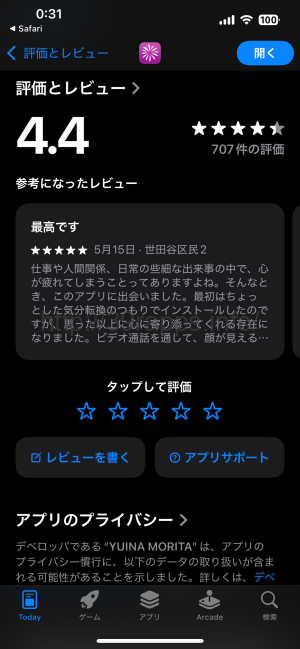 ストアの星評価は4.4と高く、レビューは707件もあったのだが、低評価している人も結構いた。