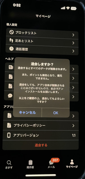 退会は次の手順で簡単にできるようになっている。