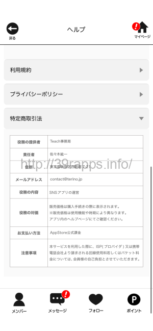 特商法の記載はきちんと存在しており、電話番号以外は記載されていた。