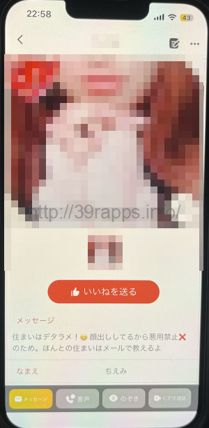 こちらがユーザー一覧のページだが、完全に顔出しをしている人は少なく、口元だけとか目元だけの写真の人が多かった。