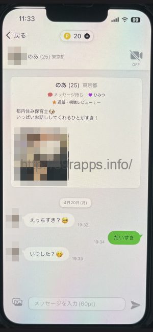 実際にメールのやり取りも何人かしてみたのだが、永遠に質問を繋げて来て、ポイントを無くさせて課金をさせるのが目的のようであった。