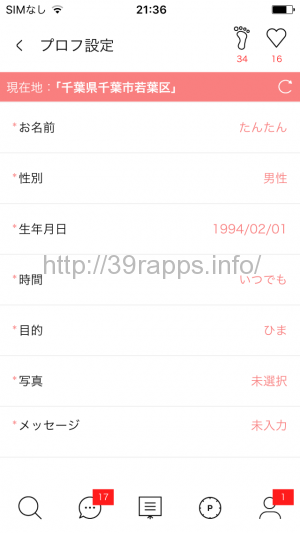 他のサクラアプリのように、簡単なプロフィールを書いて登録が完了だ。