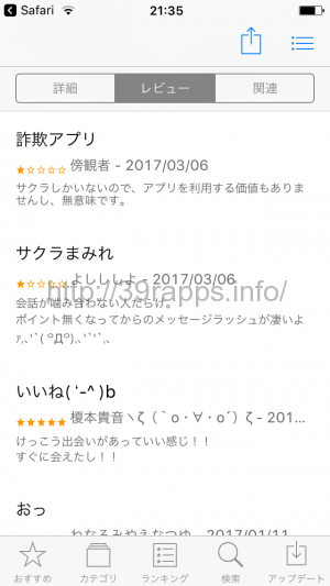 レビュー内容を確認してみると、「すぐに出会えたし!!」と書いてている人がいるな。