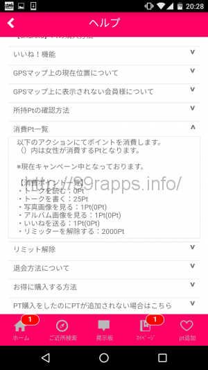 利用規約によればアプリ内で使用するポイントの代金は特商法表記を読め、とのことだ。