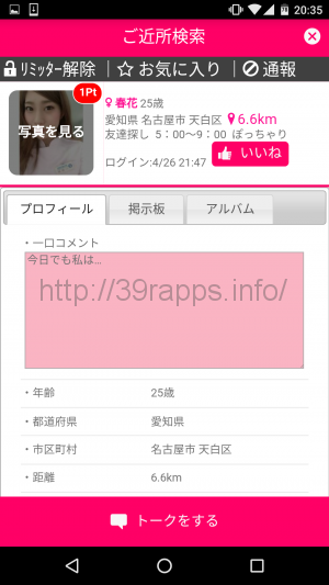 そこは良いのだが、メール1通250円という高額設定や、登録直後に女性から来たメッセージなども考慮すると、やはりサクラアプリ確定だな。