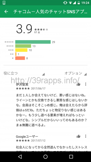 Play Storeでは、レビューによる評価の平均が☆3.9と高くなっている。