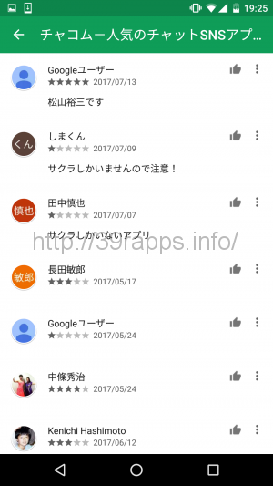 個別に高い評価を付けているレビューの内容を確認しても、「実際に会えた」「きれいな人からのアプローチがある」「人生が楽しくなった」といったこの手のサクラアプリにありがちなことしか書かれていない。