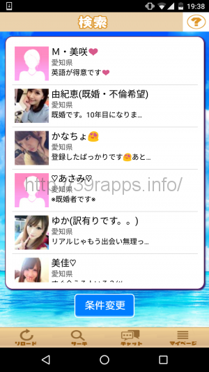 女性のみ、全国、年代指定なしにして検索した結果が右の画像である。