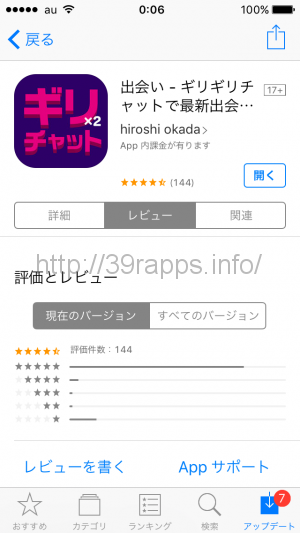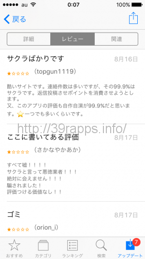レビューでは、星5と星1に大別しているというサクラアプリ特有のパターンである。