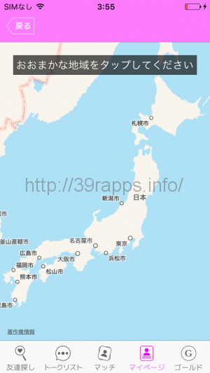 このアプリはGPS機能などは付いていなくて、自分で現在地をタップして選択するようになっているようだ。
