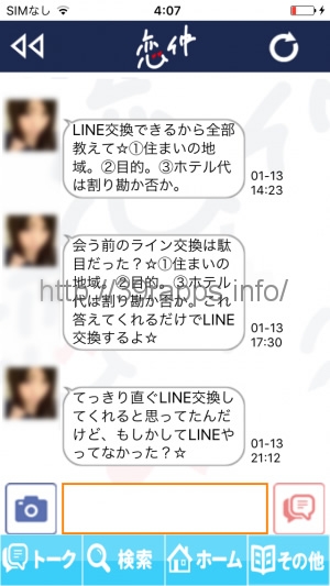 それじゃあ「恋仲-無料ID交換の可能な出会いチャットアプリ」のサクラ調査結果を細かく見ていこう。