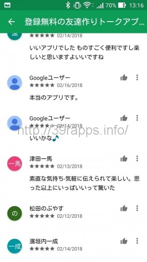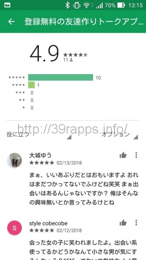 通常は、調査の最初にストアのレビューを確認してまともなアプリなのかどうかを判断する参考とする。