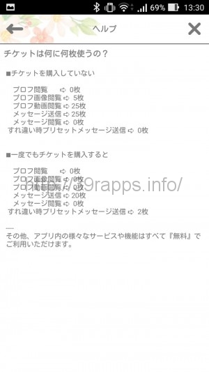 未購入ではプロフィール画像の閲覧に50円、プロフィール動画の閲覧に250円が必要だが、一度でもチケットを購入するといずれも無料となる。