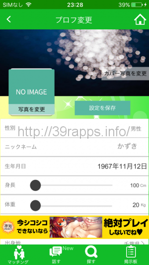 生年月日を適当に入力、ニックネームを入力するだけで登録ができる。