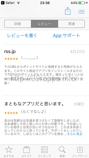 しかも、そのうちの1つのレビューが、他のポイントサイトを宣伝しているという、まったく関係のない内容なので、実質のレビューは1件のみだ。