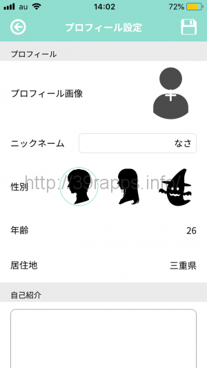 このアプリは性別の部分で、「お化けマーク」があるように、性別を隠して利用できるのが特徴だな。