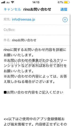 わかった情報は、利用規約に書かれていた「シーサー株式会社」というのと、お問い合わせフォームに書かれていたメールアドレスだけだ。