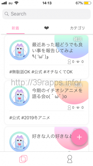 この画像のように、色んなトークルームが用意されていて、気になったトークルームに入ってグループチャットを楽しめるというアプリだ。