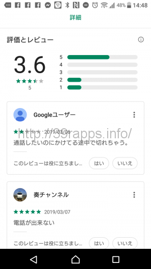 また、低評価のレビューを見ると、「電話したいのにかけると消えちゃう」という書き込みがあるぞ。